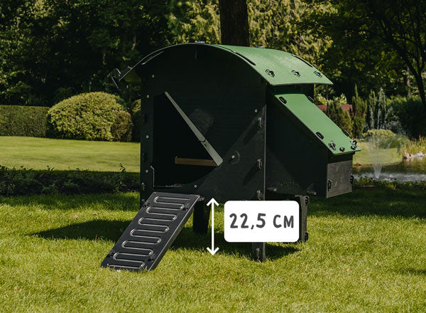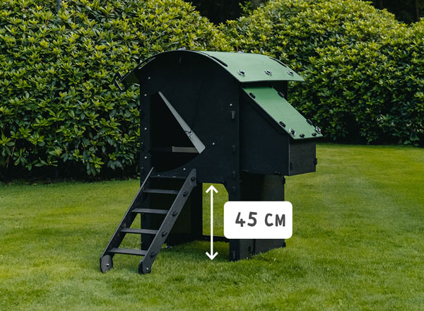 Our entry-level chicken coop sits low to the ground, making it easy for broody hens and young chicks to access.